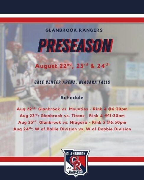 Hockey season is right around the corner, and the Glanbrook Rangers are ready to hit the ice! The team will take part in the Niagara Riverhawks Preseason Tournament from August 22–24.